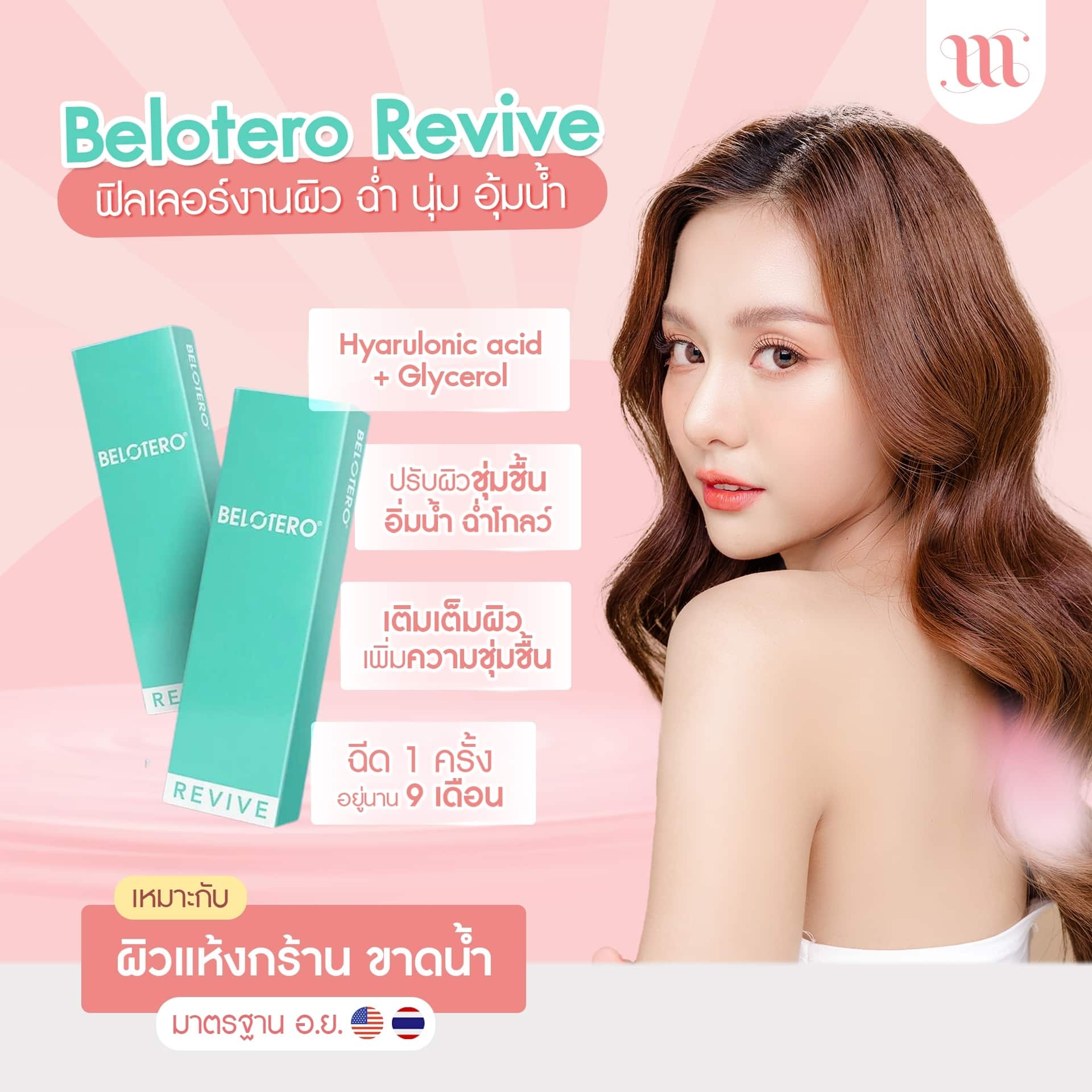 ฟิลเลอร์แบรนด์ Belotero จากสวิตเซอร์แลนด์ รุ่นเดียวที่ผสาน Hyaluronic acid ที่มีคุณสมบัติเติมเต็มน้ำแก่ผิวกับ Glycerol ที่ช่วยกักเก็บความชุ่มชื้น เข้าไว้ด้วยกัน ทำให้ Belotero Revive เป็นฟิลเลอร์ที่เน้นการบำรุงผิวให้ชุ่มชื้น อิ่มน้ำ ฉ่ำโกลว์ เผยผิวเป็นเงาสะท้อนคล้ายกระจก (Glass skin) ซึ่งเป็นเทรนด์ผิวยอดฮิตในปัจจุบัน Belotero Revive ผ่านมาตรฐานองค์การอาหารและยา สหรัฐอเมริกา (USFDA) รวมถึง อย. ไทย จึงมั่นใจได้ในประสิทธิภาพและความปลอดภัยค่ะ