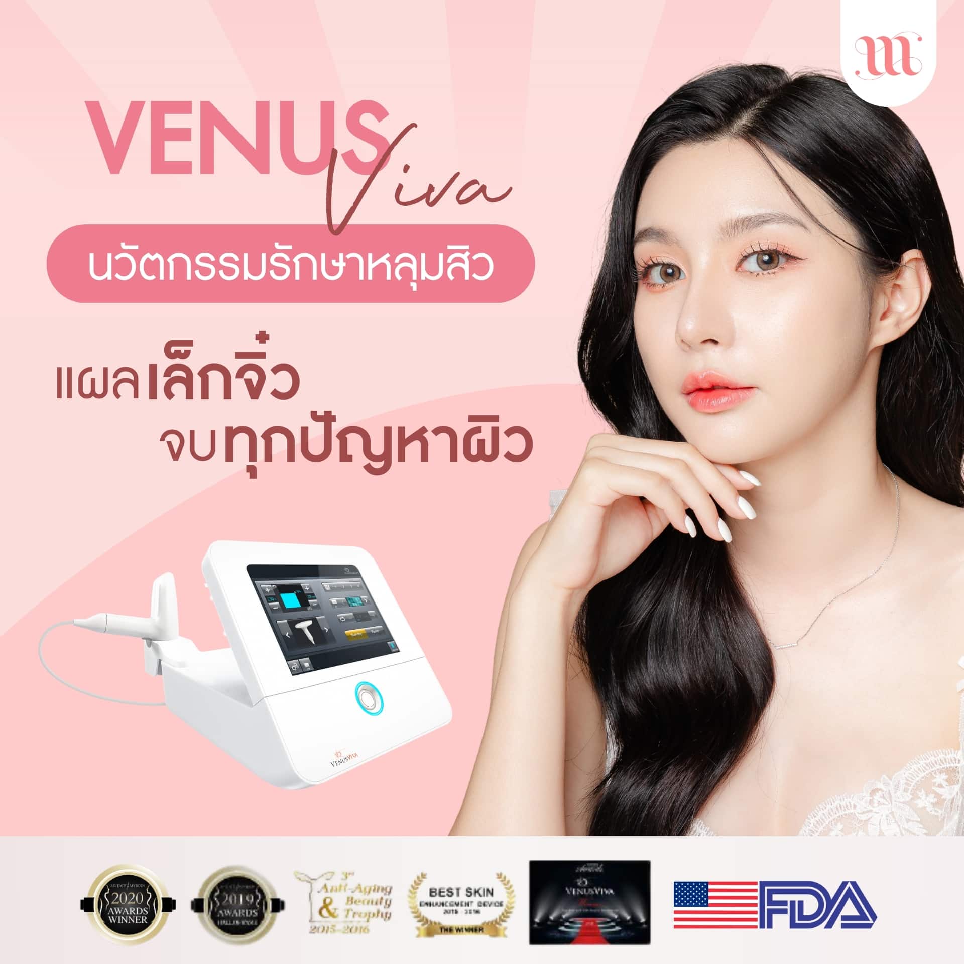 Venusviva เป็นเลเซอร์ที่รู้กันดีว่าสามารถรักษาหลุมสิวได้เป็นอย่างดี โดยมีจุดเด่นในเรื่องของแผลเล็ก เจ็บน้อย พักหน้าไม่นาน แต่เห็นผลจริงตั้งแต่ครั้งแรกที่ทำ นอกจากนี้ Venusviva ยังผ่านมาตรฐานองค์การอาหารและยา ประเทศสหรัฐอเมริกา USFDA และนิยมใช้กันหลายประเทศทั่วโลกอีกด้วยค่ะ