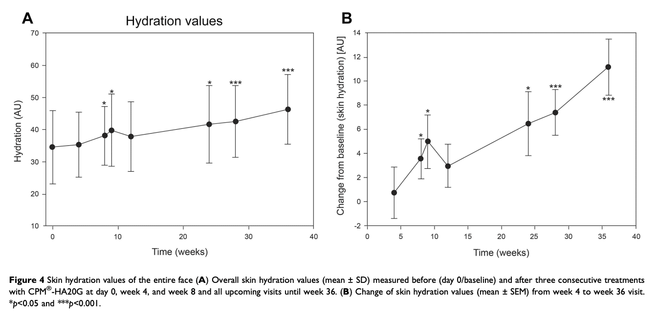 - Hyaluronic acid โมเลกุลที่ชอบน้ำ มีคุณสมบัติช่วยเพิ่มความชุ่มชื้นให้แก่ผิว